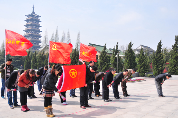 總部開展祭掃革命烈士墓活動 時間:2013-04-034444 4月3日,總部機關黨支部和團委聯合開展祭掃革命烈士墓活動,總部機關、華建置業20余名同志參加。紀委副書記、黨辦主任陳緒寶主持活動,副總經理兼總工程師程杰帶領大家向烈士紀念碑三鞠躬,并敬獻了鮮花,隨后大家共同參觀了烈士英雄事跡展。