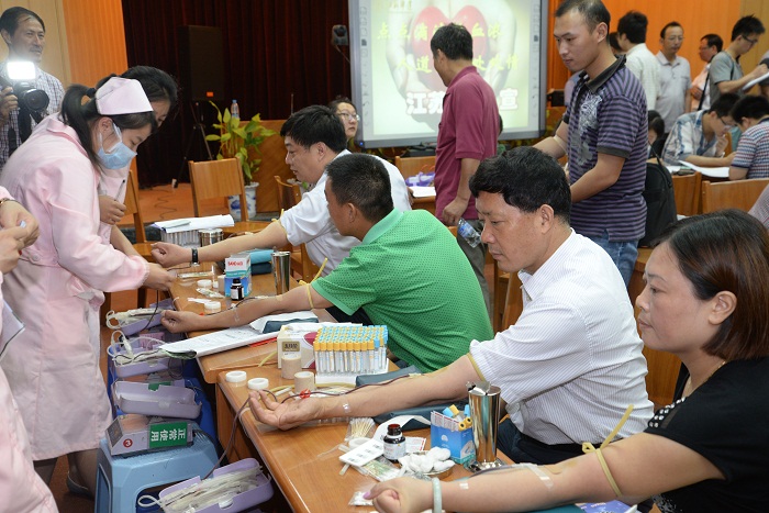 建控系統組織無償獻血活動 時間:2014-07-303532 每年組織干部職工參加全市無償獻血活動已成為建工控股公司長年堅持的一項精神文明建設的常態工作。自2002年以來,公司連續12年被上級評為無償獻血先進單位。 7月29日上午,公司再次組織系統干部職工在公司一樓會議室參加無償獻血活動。此次活動得到了系統各單位大力支持,建控公司領導吳士茂、錢啟明帶頭參加,系統共有164名干部職工參加了無償獻血活動。值得一提的是,江蘇華建員工陳剛,已連續7年捐獻血小板,每年捐獻6次,總獻血量已超過一萬毫升,為系統員工樹立了榜樣。